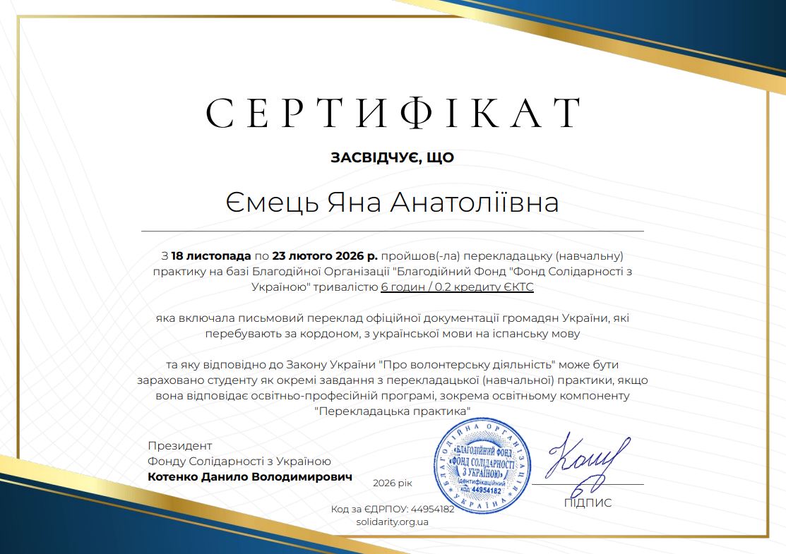 - Участь у семінарі "Італійсько-українські студії" (Травень 2024)