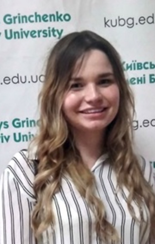 Закінчила Київський університет імені Бориса Грінченка у 2018 році за спеціальністю «Філологія» та спеціалізацією «Германські мови та літератури (переклад включно)». Захистила магістерську роботу за темою: «Характеризація персонажів у мультсеріалі «The Simpsons»: корпусний аналіз».
