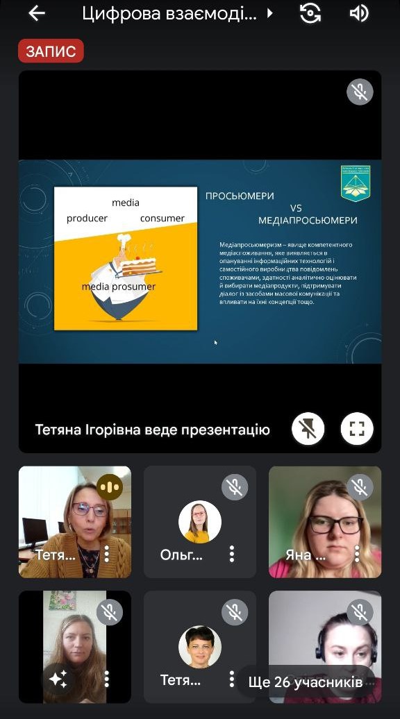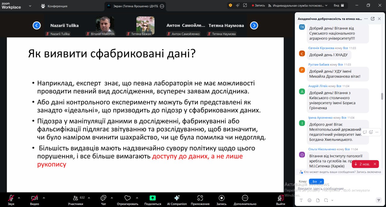 27 серпня 2025 року викладачі кафедрри романської філології Вероніка Кондрук, Андрій Літвіх, старший виукладач кафедри Галина Козько та доцент кафедри Катерина Білик долучилися до вебінару Академічна доброчесність та етика наукових досліджень в епоху відкритої науки. Спікерами виступили Тетяна ЯРОШЕНКО (ДНТБ України), Світлана ЧУКАНОВА (НаУКМА, ДНТБ), Ірина ТИХОНКОВА (Clarivate).