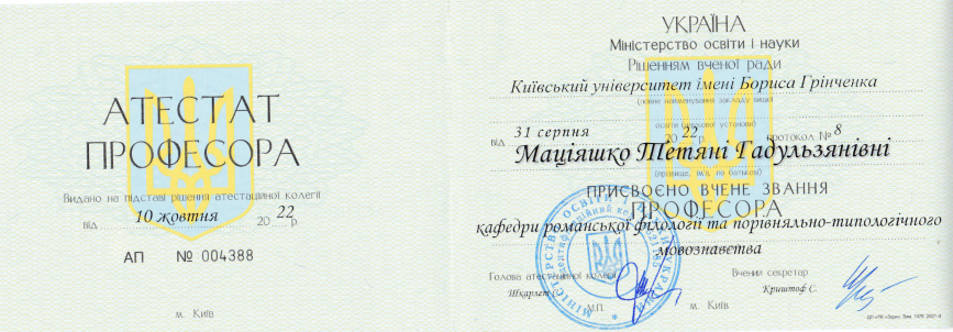 Колектив кафедри вітає МаціяшкоТетяну Гадульзянівну, доктора філологійчних наук, професора кафедри романської філології та порівняільно-типологічного мовознавства з присудженням вченого звання професора!