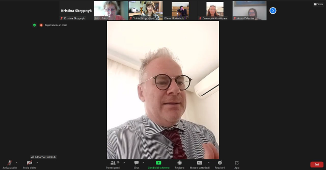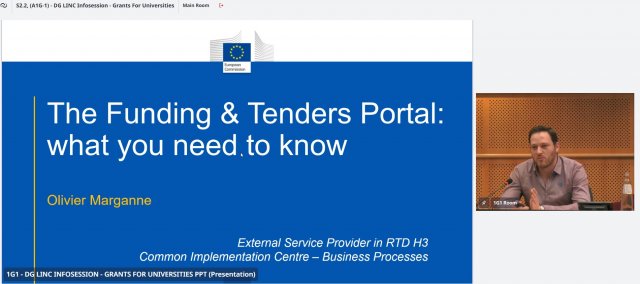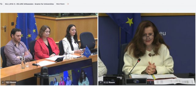 13/03/2024 Svitlana Merkulova, Andrii Kozachuk and Svitlana Nohovska visited online information session about the conference interpreting grants programme by the European Parliament - DG LINC.