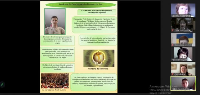 21 лютого відбувся постерний захист наукових робіт з іспанської філології учнів Київської МАН. Участь у роботі журі разом з іншими колегами з Асоціації Іспаністів України взяла завідувачка кафедри романської філології та порівняльно-типологічного мовознавства к.ф.н., доц. Юлія Підіпригора. Юні дослідники вразили широким спектром обраної тематики і творчим підходом до проведення власних досліджень. Щиро бажаємо переможцю гідно представити секцію на ІІІ Всеукраїнському етапі конкурсу-захисту науково-дослідницьких проєктів!