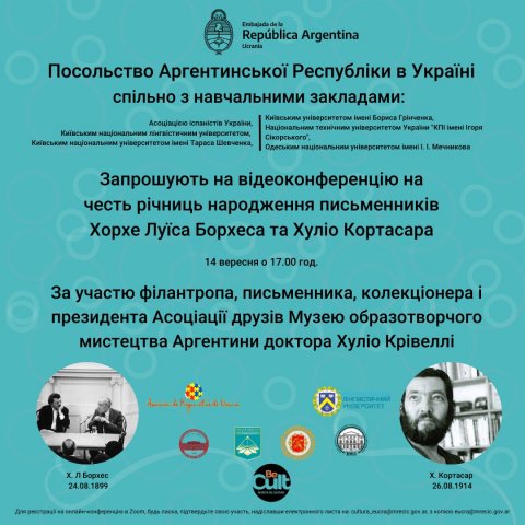 14 вересня 2023 року більше, ніж 100 поціновувачів творчості Хорхе Луїса Борхеса і Хуліо Кортасара вже вдруге протягом останніх двох років зібралися на лекції доктора Хуліо Сесара Крівеллі, відомого аргентинського мецената, колекціонера, письменника, приуроченій до річниці народження цих двох Титанів світової літератури. Лекція у форматі відеоконференції була організована Посольством Аргентинської Республіки в Україні за підтримки Асоціації іспаністів України та низки провідних університетів нашої країни. Київський університет імені Бориса Грінченка також мав честь бути одним із співорганізаторів зустрічі.